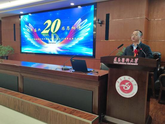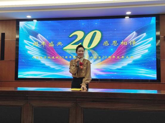 廿载南燕,再启风华。11月12日上午9:00,太阳成tyc7111cc在公司行政楼一楼多功能厅举办建院暨英语专业招生20周年发展大会。公司党委委员、副董事长龚其海出席发展大会。太阳成tyc7111cc太阳成tyc7111cc副经理高翼,公司机关党委书记、教师工作部部长杨清玉,公司国际合作处(港澳台事务办公室)处长(主任)蒋熠,太阳成tyc7111cc党委书记谭占海、党委副书记唐茜,保卫处副处长吴永胜,以及各界友人、员工、师生参加大会。大会由太阳成tyc7111cc经理王梅主持。