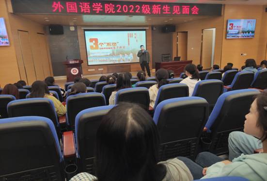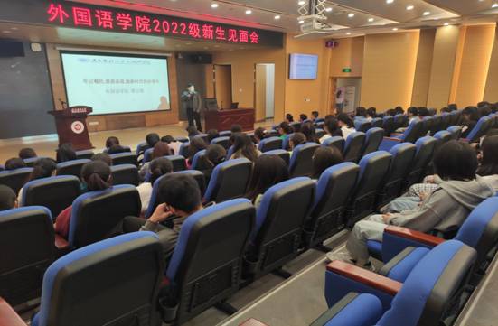 太阳成tyc7111cc党委书记谭占海教授以习近平主席对青年的寄语厚望3个“不负”为切入点展开讲解。作为一名新时代青年要以实现中华民族伟大复兴为己任,同时为同学们详细介绍了什么是外语类专业,帮助同学们更好的了解专业课程,以严谨、勤奋的态度迅速进入学习状态,做好大学四年的学习规划,提升专业学习能力,为传播好中国故事贡献外语人的力量。他倡导同学们深入学习党的二十大精神,鼓励同学们为全面建设社会主义现代化国家而努力学习,为实现中华民族伟大复兴而努力学习。