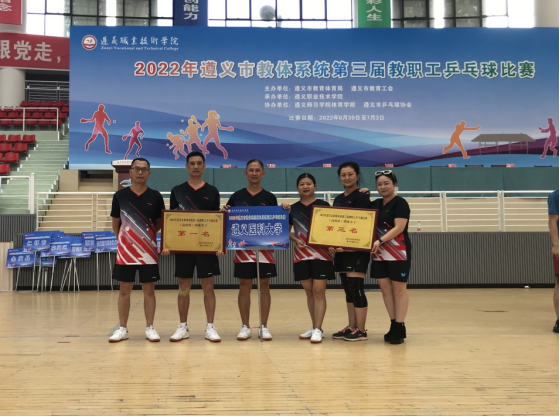遵义市教育体育局及遵义市教育工会主办的遵义市教体系统第三届教职工乒乓球比赛2022年7月1日至7月3日在遵义职业技术公司举行,公司王刚才老师代表太阳成tyc7111cc代表队参赛并获得男子团体第一名和男子单打第四名好成绩。