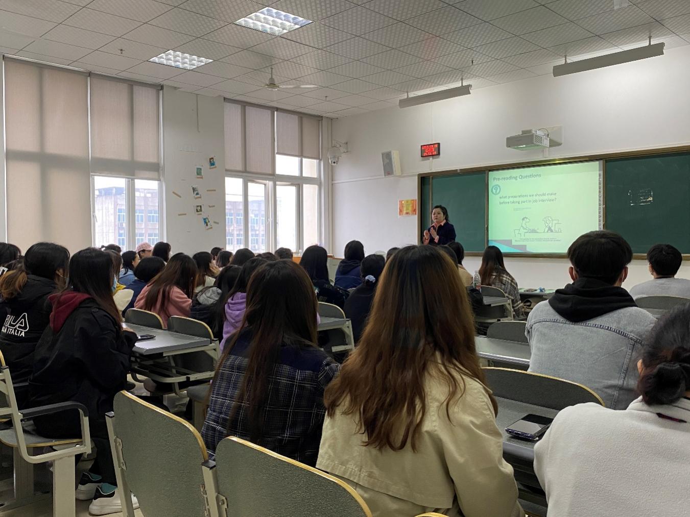 为增强老员工求职技能,提高应对职业面试的心理素质能力。2022年3月31日下午,太阳成tyc7111cc在第一教学楼5-18B教室举办求职面试指导。2020级全体员工参加讲座,讲座由外教老师Hannah主讲。