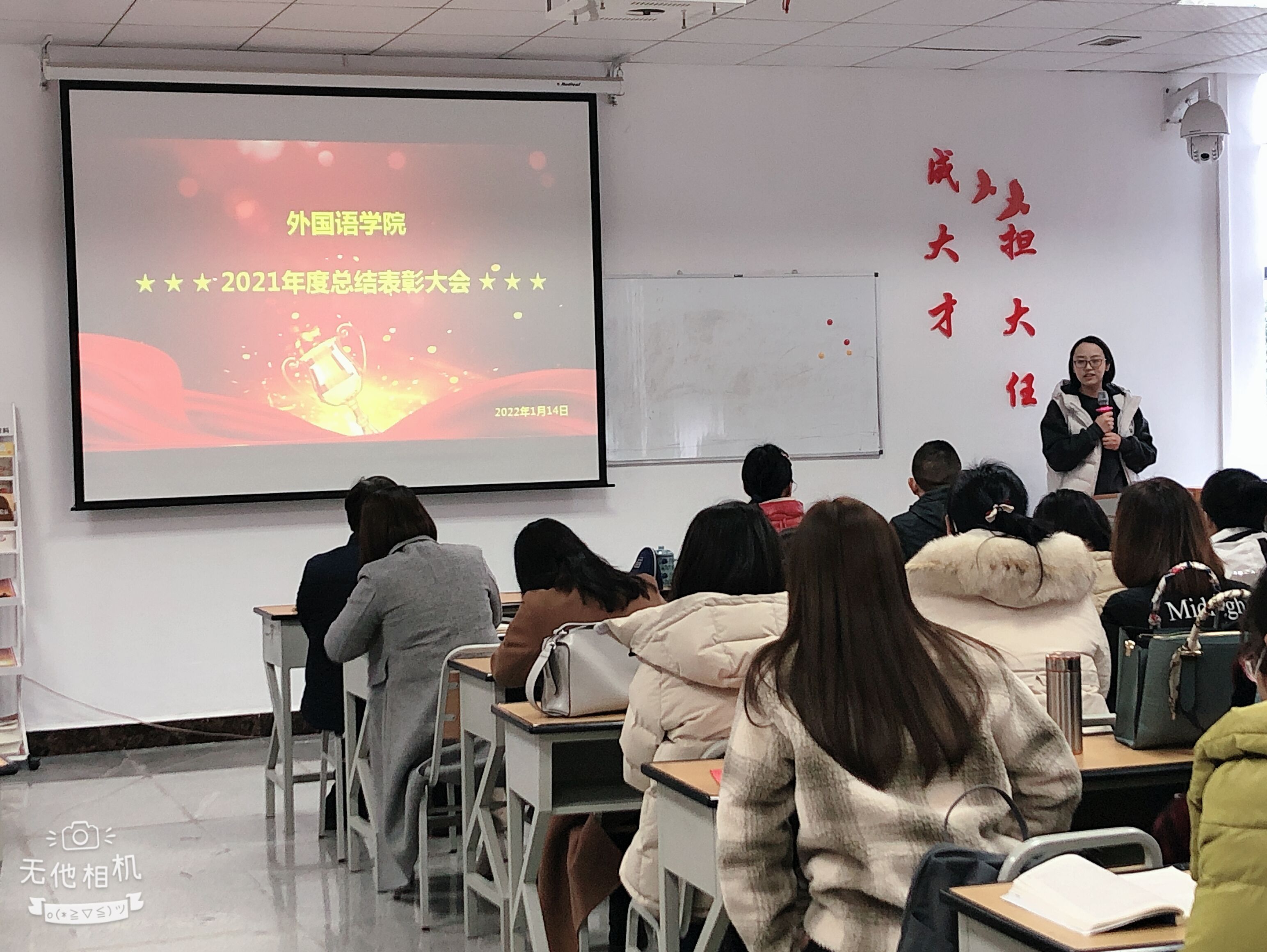 1月4日上午,2021年度总结表彰大会在综合实验楼专业5教室隆重召开。公司党委书记谭占海、经理王梅、党委副书记吴永胜、正处级组织员黎宇出席,其余教职工也全部参加本次会议,会议由行政办蔡小辉主持。