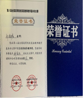 近日,由高等公司大学外语教学研究会、全国高等师范院校外语教学与研究协作组联合举办的第八届全国高等院校英语教师教学基本功大赛圆满落幕。公司英语语言文学教研室教师邹秀佶以省级一等奖的成绩进入决赛,并在决赛中荣获优秀课例评比·实录课组全国二等奖,其指导教师宋海蟾荣获优秀指导教师奖。