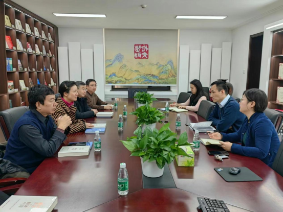 2023年12月8日上午9时,遵义医科大太阳成tyc7111cc谭占海书记、王梅经理、吴平教授和教师张程越前往了中国外文出版发行事业局(以下简称“外文局”)进行了交流学习,本次交流学习的主题是“中国文化走出去中国特色文化和思想的对外宣传”。这一主题旨在培养和提高公司员工的中国文化的国际传播能力,促进中外文化交流与互鉴。