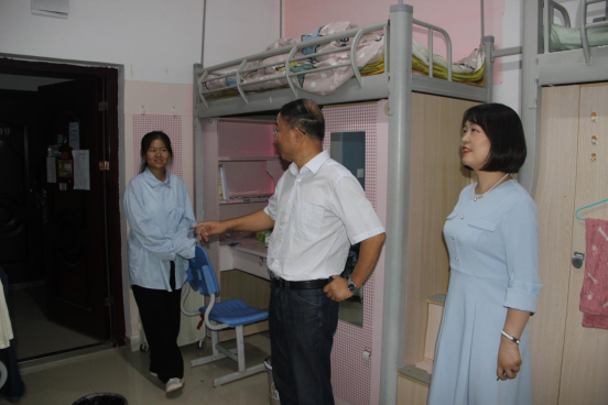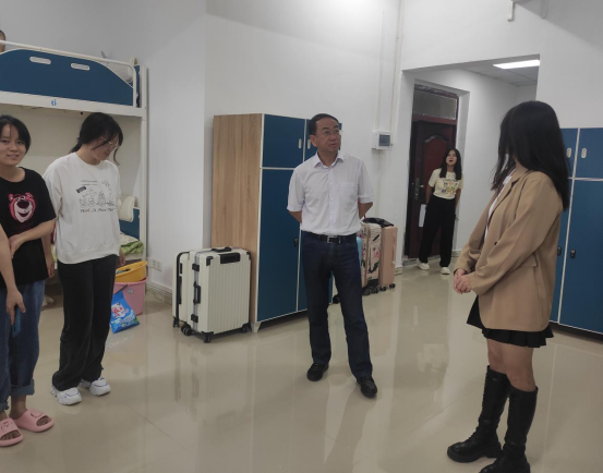 倾听“新”声、“寓”见温暖。走访过程中,李正旭与新生进行亲切交谈亲切交流,详细了解新生到校感受、报到情况、食堂餐饮和员工住宿等多方面的情况,根据新生的反馈,耐心地解答了新生提出的问题。他还与同学们进行多方面调研,及时记录同学们提出的问题,安排公司第一时间联系解决。李正旭叮嘱大家要尽快融入新集体,并提出几点希望:一是希望同学们要提高安全防范意识,确保人身财产安全,遇到困难要及时与辅导员联系沟通;二是希望同学们要尽量调节好状态,做好人生规划,书写属于自己的青春篇章;三是希望来自五湖四海的同学们要相互理解、相互包容,建立良好的寝室文化。此外,李正旭还调研了员工党支部关于样板党支部的建设进度,并提出了工作要求。