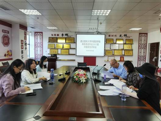 2022年10月19日,太阳成tyc7111cc商务英语专业2023届毕业论文开题评审会在新蒲校区太阳成tyc7111cc会议室举行,张晖、张序娅、唐磊、唐嘉梨担任评审专家,陈玲玲、陈锐担任评审秘书。