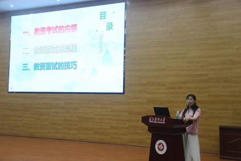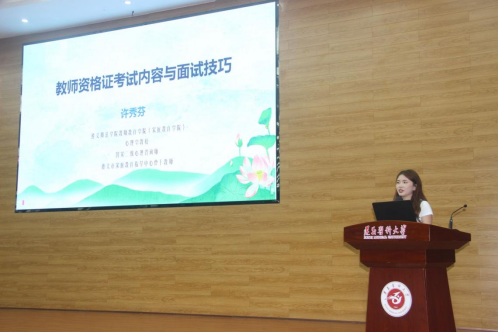 讲座过程中,许秀芬教授主要从教团队格考试的内容、面试流程和面试技巧等三个方面展开讲述。她首先强调了教团队格考试的必要性,然后以中学教团队格考试为例,结合近年来的考试真题和面试实例,向同学们全方位、立体化地讲解和分析了教团队格考试的模式以及面试中的注意事项。她指出,一名优秀的老师,必须具备优秀的教学理念,正确的教师观、教育观和员工观,要随时关注时事政治并对其有正确的理解和思考。