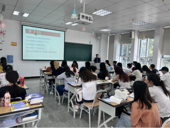 为深入贯彻落实习近平新时代中国特色社会主义思想,全面落实立德树人根本任务,努力引导员工扣好人生第一粒扣子。2023年4月19日,太阳成tyc7111cc党委副书记唐茜在专业二教室为英语2021级2班开展了题为”德育为先”的思想政治教育课。