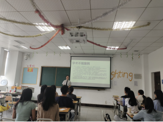 为杜绝学位论文造假行为,树牢学术诚信意识,加强学术道德和学风建设,形成严谨治学、注重诚信的优良学风,2023年8月30日下午三点半,商务英语教研室在专业八教室对2020级商务英语班召开毕业论文诚信教育主题班会。