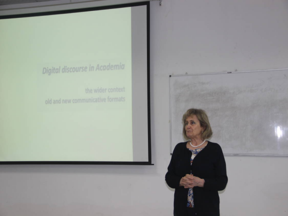 Marina Bondi教授以Digital discourse in Academia这一话题为切口,围绕The wider context old和New communicative formats,指出数字文本是多模态的,具有超文本性与互文性,同时也具有传统文本的可复制性与真实性。学术话语是一个庞大的商业产业,通过共享知识与社区纽带形式,虚拟话语社区得以迅速创建、扩展和维护,增加了获得知识的机会,但却产生了参与机制限制等新问题。Marina Bondi教授鼓励大家练习复杂的双语形式,抵制快餐式学术,培养技术专长。