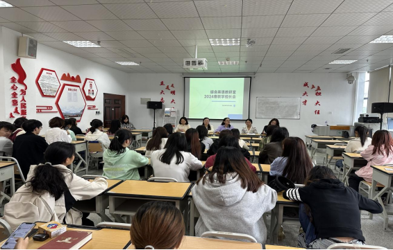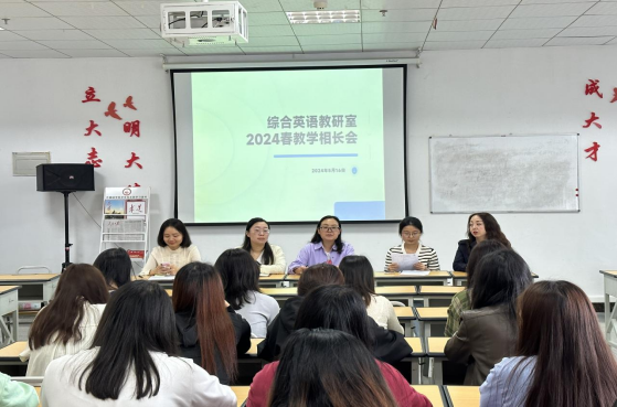 2024年5月16日中午12:10分,太阳成tyc7111cc综合英语教研室在专业5教室召开了2024年春季学期教学相长会。会议由综合英语教研室主任何永娇老师主持。任课教师张泽玫、官姝雅、阮晔、周田莉、谭婷婷、刘红、罗雯、秦雪飞及2022级、2023级共50名英语专业员工代表参加了此次教学相长会。