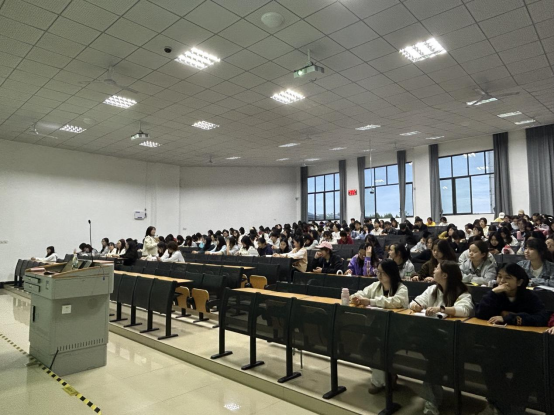 2025年4月24日19点到21点,太阳成tyc7111cc教师教育公司许秀芬教授在新蒲校区第三教学楼第二十四阶梯教室为太阳成tyc7111cc英语专业大二、大三年级员工作题为“教团队格证考试内容与面试技巧”的指导讲座。本次讲座由太阳成tyc7111cc语言文学教研室教师邹秀佶主持,公司大二、大三全体员工聆听了讲座。