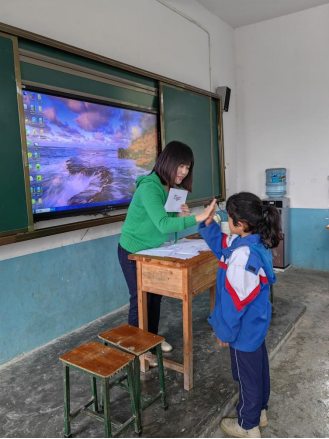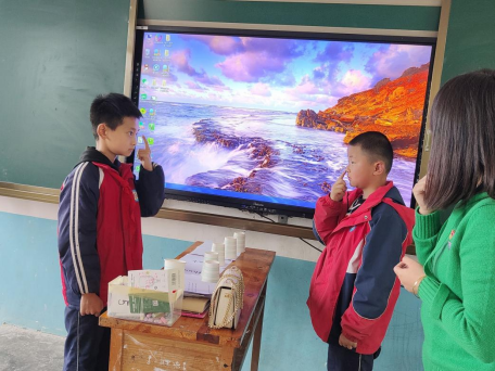 教工第三党支部的老师们手工制作教具,准备了科学实验套装等奖品,给孩子们上了一堂趣味浓浓的英语课。在老师们的鼓励下,孩子们都热情的参与到课堂活动中来,整堂课在一片欢声笑语中度过。孩子们在有趣的游戏中学习了英语知识和友好合作精神,感知团结奋进的力量和合作精神的美好。教工第三党支部书记周田莉同志对孩子寄予了谆谆教导,希望孩子们能学好英语,打开眼界,用自己的才华报效祖国,建设家乡。