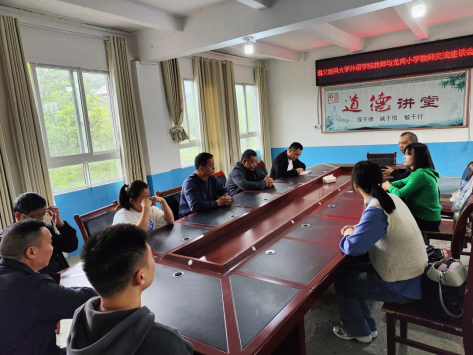 随后,教工第三党支部的党员们与龙岗小学全体教师开展了一场交流座谈会。与会人员深入交流了教学心得和工作经验,希望为山村小学建设更好的贡献力量。