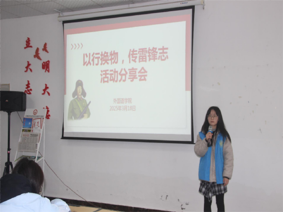 活动三:3月18日15:50,公司组织同学们于综合楼专业五教室开展学雷锋精神活动分享会和知识抢答。通过观看雷锋事迹短片,深入了解雷锋的故事;为了让同学们将雷锋精神铭记于心,还开展了关于雷锋知识抢答环节,以互动的方式,激发同学们对雷锋事迹和精神的学习热情;此外,现场播放了部分同学参与志愿活动的视频,同学们分享参与此次活动的感悟与体会,在交流中引发大家对善举的共鸣与深入思考。