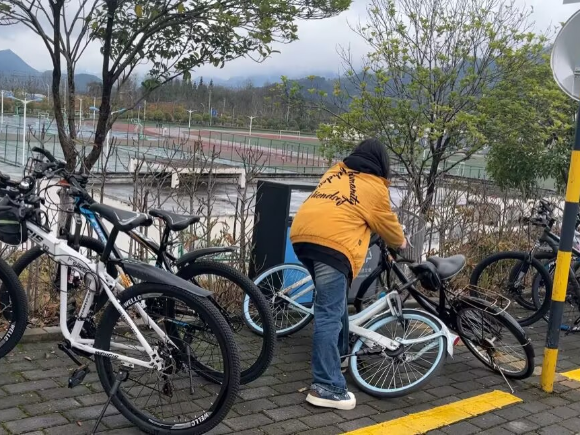 图3:英语23-2班同学扶起倒地自行车