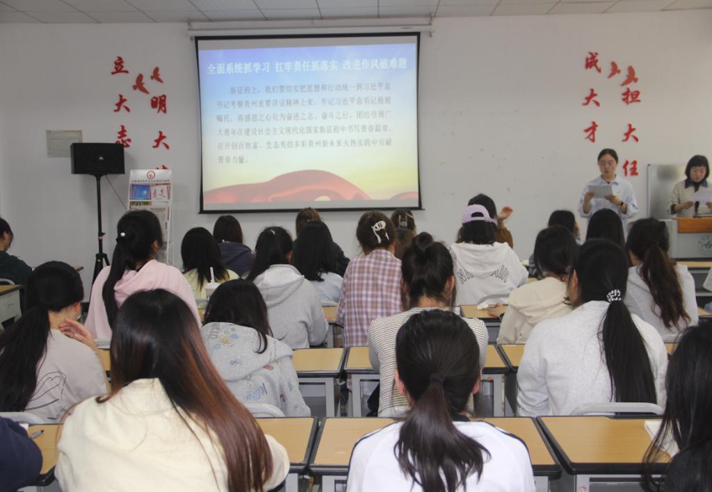 为深入学习贯彻习近平总书记在贵州考察时的重要讲话精神,2025年5月15日,太阳成tyc7111cc团委在综合实验楼专业五教室举办了“理论宣传二人讲”活动。本次活动由太阳成tyc7111cc党委副书记唐茜、团委负责人郑婉萍主讲,员工团干部及2023、2024级团员代表共七十余人参加。