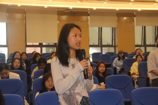 沙龙会最热烈的环节是现场互动问答,浓厚的氛围感染在场的每一个人,同学们踊跃地提问,三位员工对如何确定考研院校、跨专业考研注意事项、考研如何释放压力等问题进行了详细解答,为同学们提供了实用性建议。现场分享的人生五问,引发同学们对人生的思考,梳理出清晰的目标,为之正确而持续奋斗,更新思维方式,不给自己的人生设限。