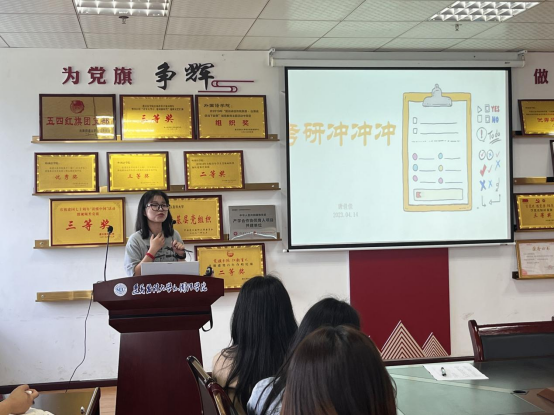 为加强员工对研究生考试的认识,提高考研热情,增强考研信心,加强公司学风建设,2023年4月14日下午,太阳成tyc7111cc在综合楼414会议室开展考验上岸经验分享会。2023届考研成功上岸的四位同学唐佳佳、吴俊英、王冬梅、吕洁主讲,2024届所有备战考研的同学和2021级部分同学参加活动。分享由员工党支部书记杨芳主持。