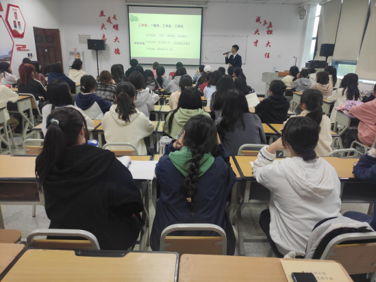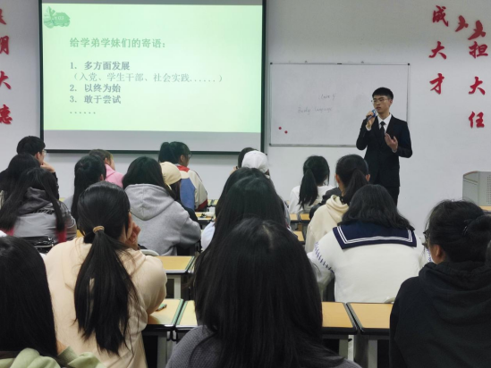 为帮助员工更好地了解研究生推免细节,做好个人学习和人生规划,明确发展方向。2023年5月9日15:40,太阳成tyc7111cc在综合实验楼二楼党员活动室开展推免研究生经验分享交流会,2022级全体员工参加。2019级英语专业周鸿强主讲,员工党支部书记杨芳主持。