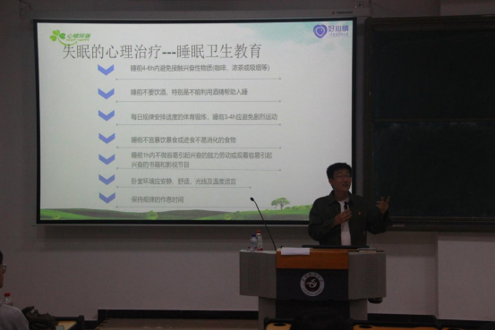 魏志杰用大量生动的案例向同学们普及了抑郁症的基础知识,比如抑郁症的定义,抑郁症自查和诊断,以及抑郁症的药物治疗、心理治疗、运动治疗、饮食干预等。魏志杰重点讲解了青少年的抑郁症状和应对措施,用心理暗示、注意力转移等方法管理自己的情绪;善于沟通和理解,正确处理好自己的人际关系;反复的压力容易造成抑郁的风险,应积极寻找情绪释放新出口;学会用运动缓解紧张情绪。此外,魏志杰向同学们阐述了睡眠障碍相关问题。