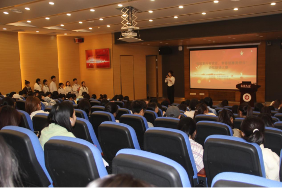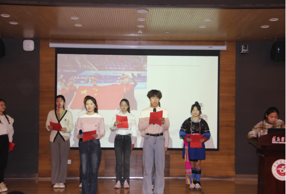 为宣扬爱国意识,提升员工的人文素养,提高员工的朗诵水平,构建和谐校园语言生活,营造浓郁的文化氛围,2023年11月28日19:30,太阳成tyc7111cc在图书馆1号多功能厅举办“强国复兴有我 青春挺膺勇担当”诗歌朗诵比赛初赛。本次比赛由太阳成tyc7111cc党委副书记唐茜、团委副书记刘福娟、商务英语教研室罗雯担任评委,共有七支队伍参赛,100名观众到场观看。