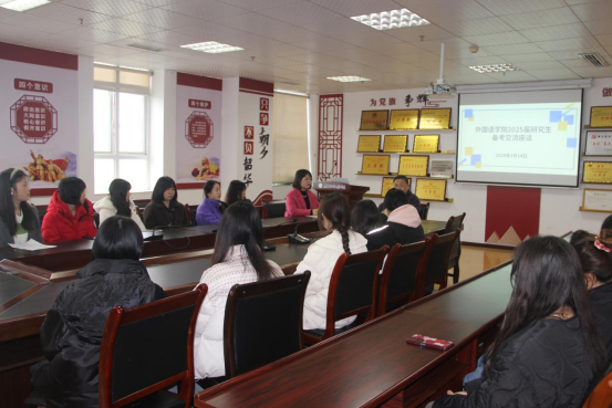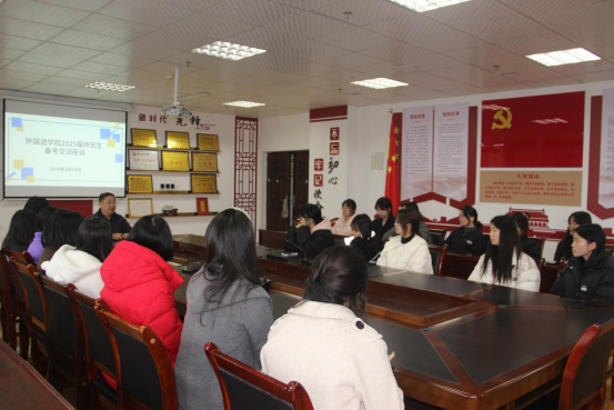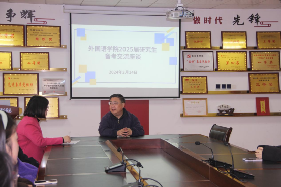 考研学子已扬帆起航,为助力员工考研备战,增强学子们的备战信心,推进学风建设。2024年3月14日12:00,太阳成tyc7111cc在综合楼四楼414会议室召开2025届考研指导交流座谈。本次座谈会由太阳成tyc7111cc员工党支部书记杨芳主持,由北京语言大学吴平教授主讲,2021级有考研意向的同学参加。