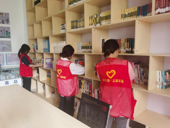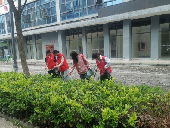 新中街道松源社区驻村第一书记余快带领社区工作人员田小凤接待实践团队,并向团队介绍社区基本情况。从社区建筑区域到绿化带布局,从居民情况到社区青少年活动中心功能,他们都进行了详细的介绍。实践活动的主要内容是社区公共空间清洁,打扫整理青少年活动中心,清理社区门柱及围墙小广告,清洁社区绿化带。第一组负责打扫青少年活动中心,整理活动中心书架上的读物,按照类别收纳玩具。第二组负责清理门柱及围墙等处乱贴的小广告。第三组负责清理绿化带中的白色垃圾。同学们身穿红色志愿者马甲,拿上工具,立即行动,辛勤劳动的红色身影成了社区里最靓丽的风景。经过约两小时热火朝天的打扫,打扫区域焕然一新。