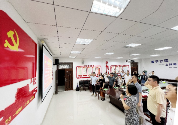 “明党纪”环节,基础医公司第三、十一、十二党支部书记分别带头领学了《中国共产党纪律处分条例》,并进行研讨发言,大家一起观看了警示教育片《持续发力 纵深推进》第三集“强化正风肃纪”。“学样板”环节,太阳成tyc7111cc员工党支部书记杨芳就省委教育工委党建样板支部的创建经验进行了分享,她还与基础医公司的党员同志们进行了党建品牌创建的深度交流,并就如何更好地发挥党建引领,助力教师党员职业发展给出了具体且实用的建议。“庆七一”环节,大家集中观看了中国共产党国际形象网络宣传片《CPC》,重温入党誓词、赠送“政治生日”贺卡,共同庆祝党的生日,进一步坚定了理想信念,增强了党员荣誉感和归属感。党员们纷纷表示,此次活动学习内容丰富、交流效果显著,今后要以此为契机持续加强沟通协作,切实提升党建工作质量。