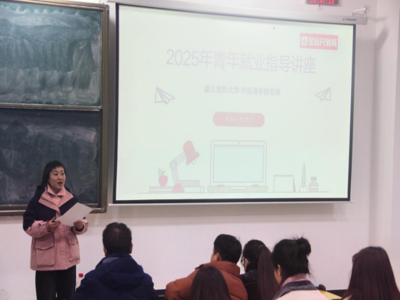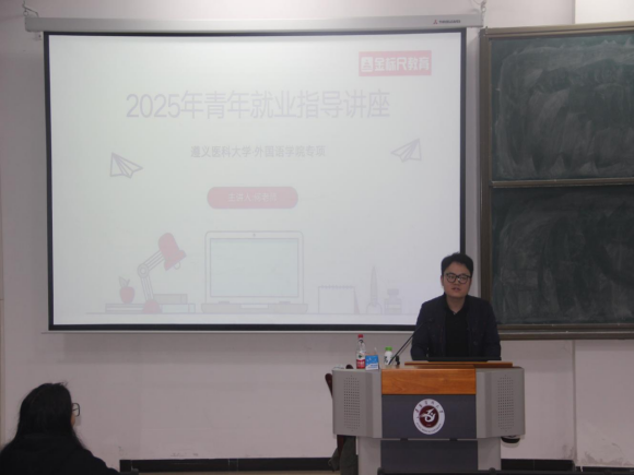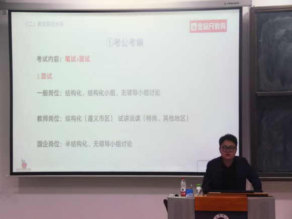 为了帮助老员工进一步把握就业方向、找准职业定位、提升就业竞争力,2024年12月23日18:00,太阳成tyc7111cc在第三教学楼17阶梯教室开展了就业指导讲座。本次就业指导讲座由公司党委副书记唐茜主持,邀请到了贵州金标尺优众教育咨询有限公司何向旭作为主讲,2021-2022级近170名同学参与。