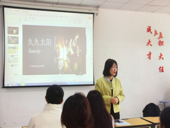 久久太阳的公司代表从公司简介、企业优势、业务展示三个方面向同学们介绍了该公司的基本情况、业务领域、公司发展前景、晋升途径以及福利待遇等内容,并提出了当前外贸业务员、跟单员等岗位的需求,讲解了简历投递方式和招聘流程。他用生动的案例和详实的数据强调,就业不是一蹴而就的,而是一个需要长期规划、持续努力和不断调整的过程。宣讲结束后,他与同学们进行了深入的交流,表达了对大家加入的期待,还与几个有意向的员工进行了面试。