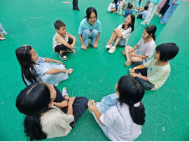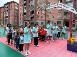 活动中,团队队员不仅陪伴儿童开展多元互动——既有老鹰捉小鸡、大风吹、丢手绢、小马过河等户外游戏,也有你画我猜、堆积木、下象棋、拼地图等益智项目,还组织打羽毛球、篮球、跳绳等活动锻炼身体;更贴心守护日常,协助辅导作业等,在玩乐与照料中传递温暖,助力儿童快乐成长。