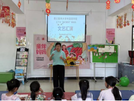 社区儿童陪伴实践活动收官当日下午,文艺汇演温馨启幕。现场陆续上演歌曲舞蹈串烧、诗歌朗诵、《虫儿飞》手势舞及舞蹈串烧等节目,孩子们以活泼的舞姿、稚嫩的声线展现活力。最后,活动以一名小朋友带领大家合唱《歌唱祖国》结束,嘹亮的歌声为本次“童伴妈妈”活动画上圆满句号,也为孩子们留存了一段欢乐记忆。